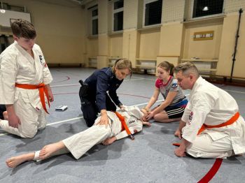 Policjantka uczyła młodych karateków pierwszej pomocy