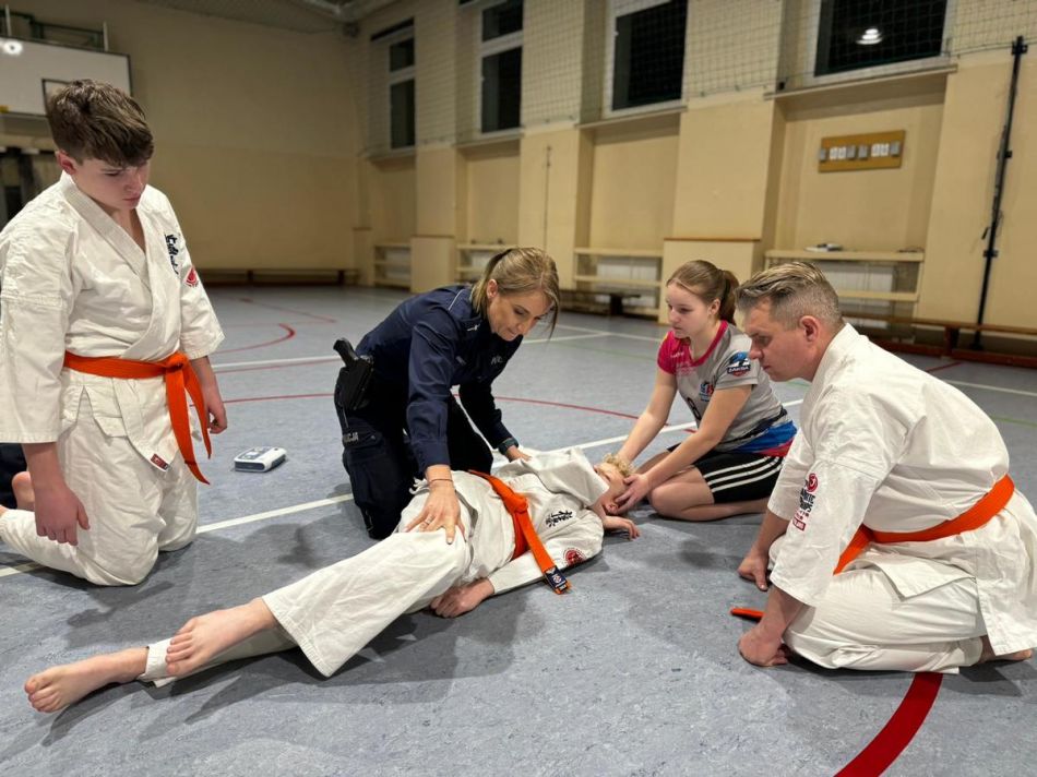 [1/8] Policjantka uczyła młodych karateków pierwszej pomocy