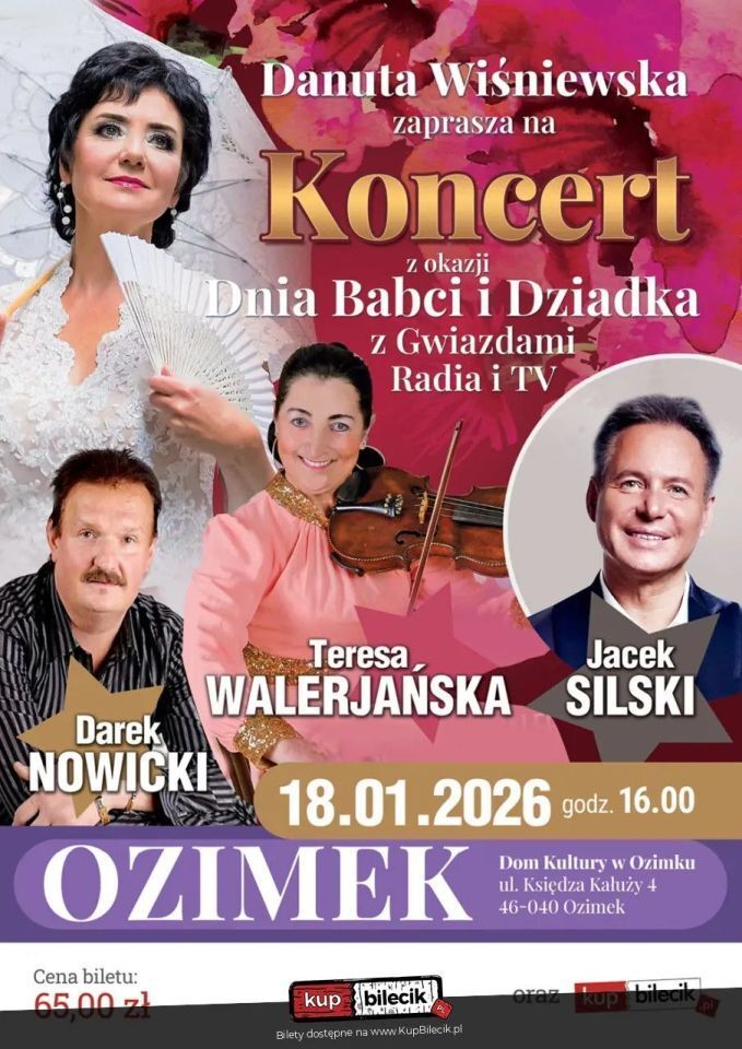Dzień Babci i Dziadka z Gwiazdami Radia i TV, to barwny, niepowtarzalny koncert przepełniony pięknymi strojami, znanymi Państwu utworami z radia i telewizji, a przede wszystkim wspaniałą atmosferą i dużą porcją humoru!