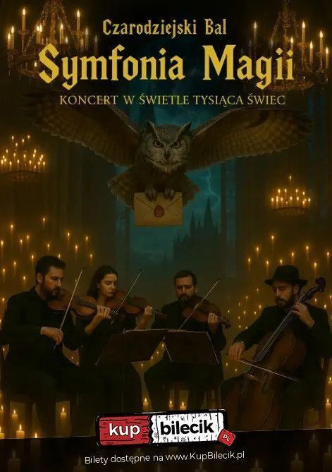 "Symfonia Magii" to niezwykłe wydarzenie muzyczne, inspirowane legendarną ścieżką dźwiękową znaną z filmowej sagi o młodych czarodziejach. Na scenie wystąpi kwartet smyczkowy, który wykona na żywo najpiękniejsze, najbardziej rozpoznawalne tematy - od subtelnych melodii towarzyszących sowom, listom i początkowi roku szkolnego, po monumentalne utwory z wielkich finałów. Każda nuta będzie jak powrót do Wielkiej Sali, do skrzypiących schodów, do poranków przy eliksirach i zaklęciach wypowiadanych szeptem.